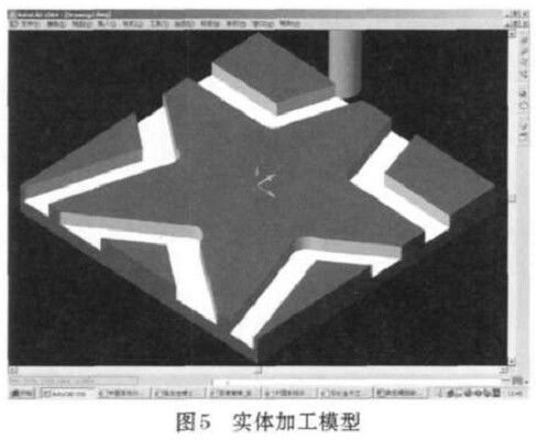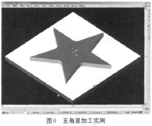 例如, 用戶定義一個矩形毛坯, 和一個半徑為10個單位的外形銑刀, 加工一個五角星的案例, 其加工完成后的效果如圖6所示。