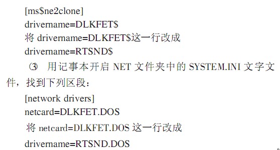 (3 ) 機器名 共享名 工作組等參數設置不一致 此時用戶可以 EDIT 命令手動編輯 c:\net 文件夾內的 PROTOCOL.INI 和SYSTEM.INI,快速修改相關參數