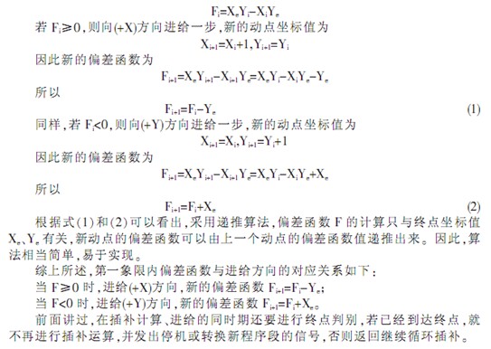 當(dāng) Fi< 0 時(shí) 進(jìn)給(+Y)方向 Fi+1=Fi+Xe