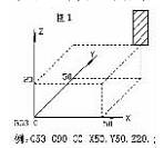 指令意義: 選擇工件坐標系, 絕對值編程, 刀具由當前點快速移動到 X40. Y50.位置, 屏幕顯示的“ 絕對坐標” 為刀具在所選擇的工件坐標系中的坐標值;